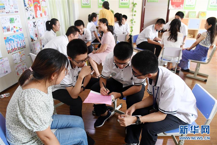 7月27日,在南宁市西乡塘区未成年人心理健康辅导站,老师和学生在心理辅导活动中交流。 新华社记者 陆波岸 摄
