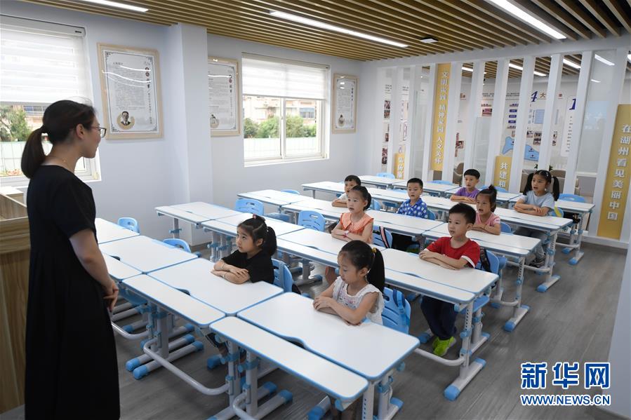 7月28日,志愿者在吉山四社区“新时代文明实践站”为小朋友讲授经典诗词。