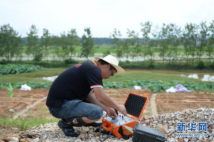7月28日,在临湘市聂市镇毛湾垸,工作人员在调试检测仪。新华社发(陈振海摄)