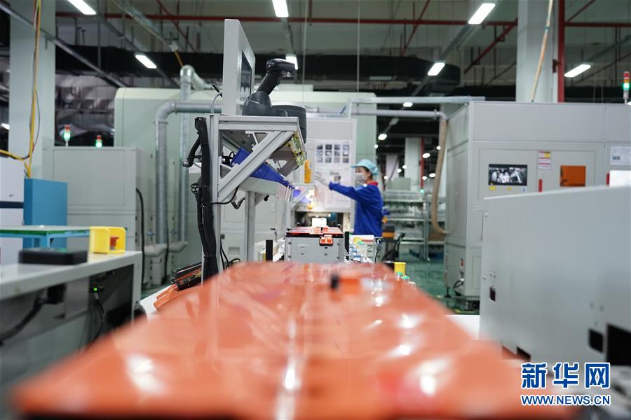 7月28日,在西宁市南川工业园区的青海比亚迪动力电池工厂内,工作人员在对电池进行检测。 新华社记者 解统强 摄