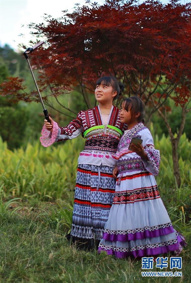海雀村村民在拍摄社交媒体视频(8月4日摄)。新华社记者 刘续 摄