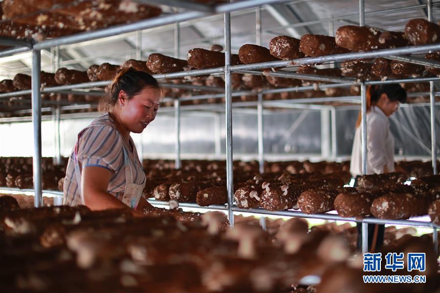 村民在海雀村的香菇种植基地内工作(8月4日摄)。新华社记者 刘续 摄