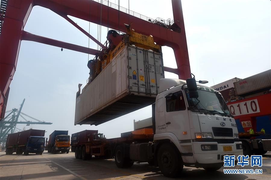 8月4日,在天津港集装箱码头,货物被吊装到货车上。 当日,在天津港集装箱码头,满载冷冻食品的集装箱通过“船边直提”作业模式顺利通关,自进境船舶直接吊装至运输车辆,实现从货物卸船到运输车辆驶离码头的港口提货作业“零等待”。 据了解,“船边直提”模式以进口集装箱货物向海关提前申报为基础,企业充分利用货物在途运输时间办理报关申报、单证审核、税款缴纳等通关手续,有关进境船舶抵港后,允许社会车辆直接在船舶卸载时从船边装箱提离,进一步优化了港口物流效率。 新华社发(赵子硕 摄)