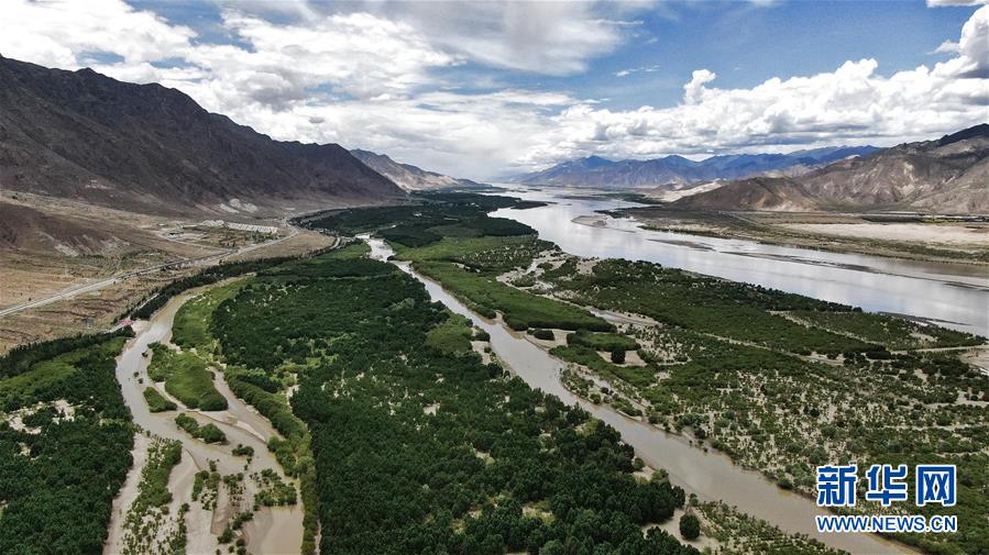 雅鲁藏布江岸边的绿树(6月27日摄,无人机照片)。 新华社记者 晋美多吉 摄