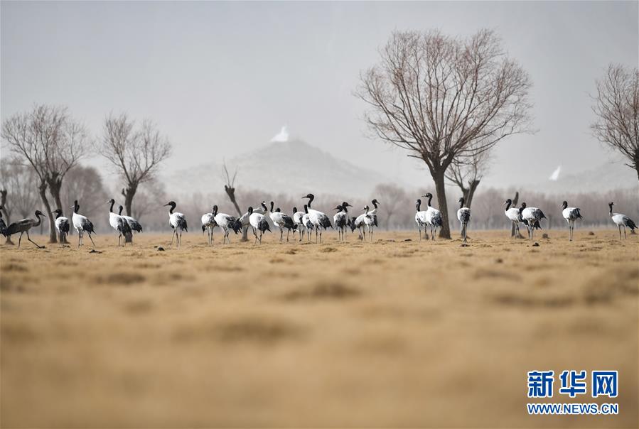 西藏山南市境内雅鲁藏布江北岸的黑颈鹤(3月11日摄)。 新华社记者 晋美多吉 摄
