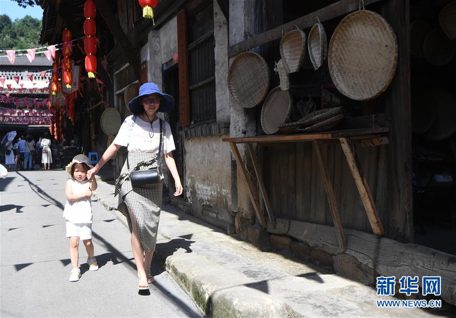 8月5日,游客在丰盛古镇游览。 近年来,重庆市巴南区引入社会资本,按照“修旧如旧、适度开发”的原则对丰盛古镇进行保护性修缮和景区化打造,让古镇在保留原有历史人文风貌的同时,焕发新活力。 新华社记者 王全超 摄