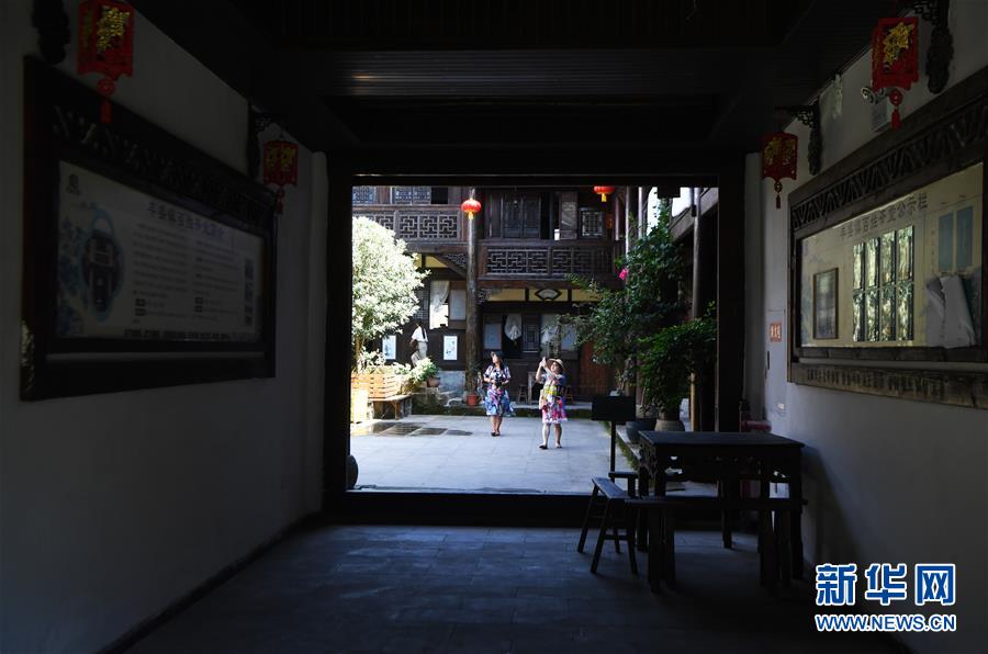 8月5日,游客在丰盛古镇游览。 近年来,重庆市巴南区引入社会资本,按照“修旧如旧、适度开发”的原则对丰盛古镇进行保护性修缮和景区化打造,让古镇在保留原有历史人文风貌的同时,焕发新活力。 新华社记者 王全超 摄