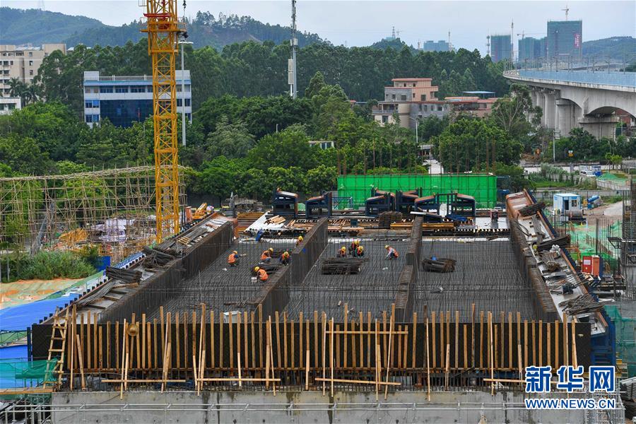 8月5日,中铁十一局工人在清远磁浮银盏温泉站施工作业。 目前,广东首条中低速磁浮线——清远磁浮旅游专线项目建设有序推进。广东清远磁浮旅游专线项目全长约38公里,分两期建设。首期全长8.014公里,将在9月份开始铺轨,预计在2020年底实现主体工程全面完工。 新华社记者 刘大伟 摄