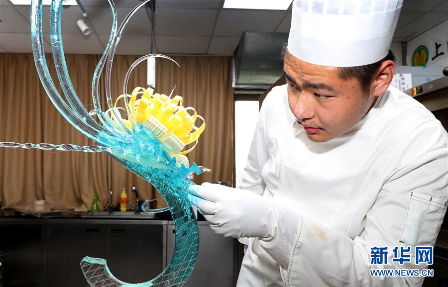 8月5日,糖艺比赛参赛选手在创作中。 当日,第二十一届全国焙烤职业技能竞赛上海赛区选拔赛,在上海市现代食品职业技能培训中心举行,来自上海、江苏、浙江等地的近60名焙烤行业技师,在艺术面包、传统糕点、糖艺和艺术巧克力等项目中进行比拼,在充满焙烤香气的赛场上展现技艺。 新华社记者方喆摄