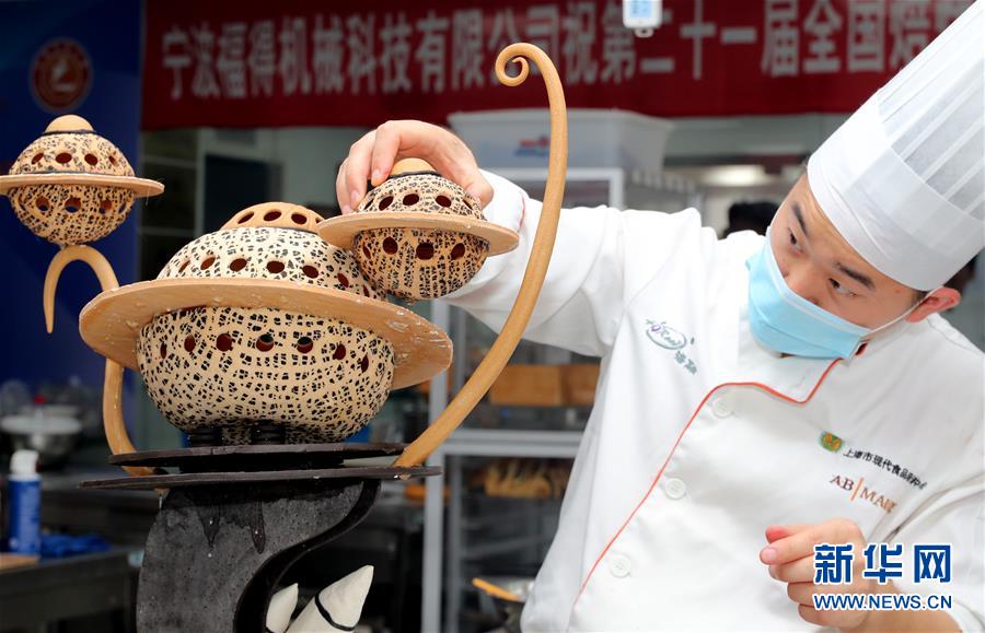 8月5日,参赛选手在创作航天主题的艺术面包。 当日,第二十一届全国焙烤职业技能竞赛上海赛区选拔赛,在上海市现代食品职业技能培训中心举行,来自上海、江苏、浙江等地的近60名焙烤行业技师,在艺术面包、传统糕点、糖艺和艺术巧克力等项目中进行比拼,在充满焙烤香气的赛场上展现技艺。 新华社记者方喆摄