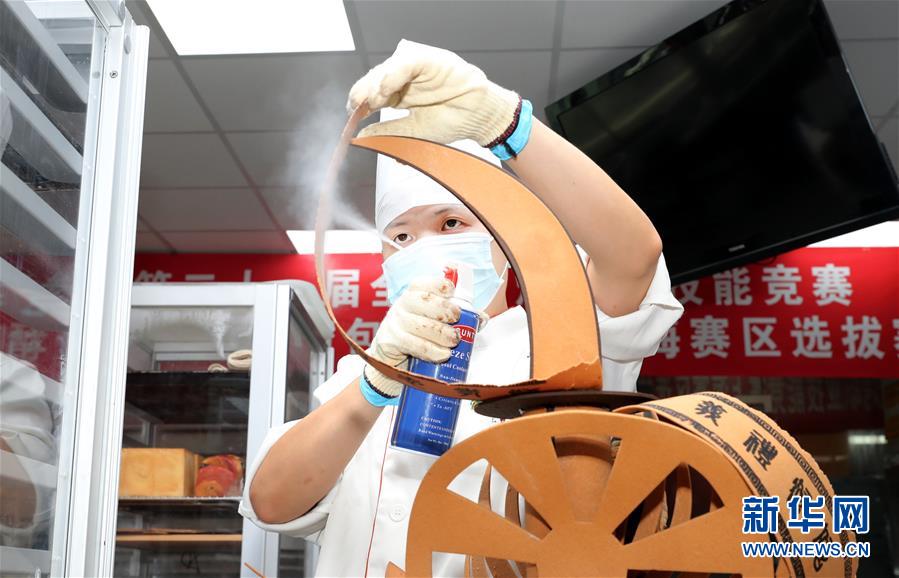 8月5日,参赛选手在为艺术面包定型。 当日,第二十一届全国焙烤职业技能竞赛上海赛区选拔赛,在上海市现代食品职业技能培训中心举行,来自上海、江苏、浙江等地的近60名焙烤行业技师,在艺术面包、传统糕点、糖艺和艺术巧克力等项目中进行比拼,在充满焙烤香气的赛场上展现技艺。 新华社记者方喆摄