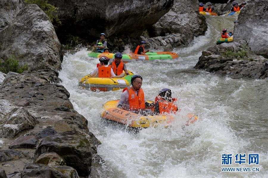 8月8日,游客在兴山县朝天吼漂流景区漂流。新华社发(蔡亮 摄)