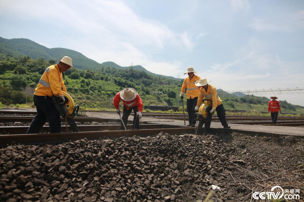 在烈日的炙烤下,钢轨伸长后,轨缝就会变小,当绝缘轨缝小于6mm时,如果绝缘块挤压失效,联电后将会影响行车,所以工区定期对管内1680余组绝缘接头进行排查整治。此时青工杨艺正拿着木折尺,对道岔的绝缘轨缝进行测量,工友们配合着进行记录、测量轨温等,对巡检发现松动的螺栓,缺失的零配件进行紧固、补充。