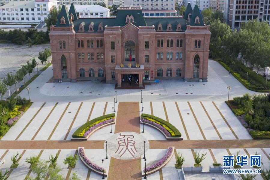 这是8月8日在抚远市拍摄的鱼文化博物馆(无人机照片)。鱼文化博物馆主要展示了黑龙江和乌苏里江流域的水生物和生态。新华社记者 谢剑飞 摄