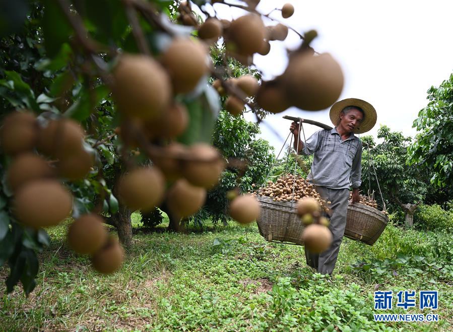 8月10日,在广西柳州市鱼峰区白沙镇新安村,村民运送采摘的龙眼。 近日,广西柳州市鱼峰区白沙镇新安村等沿河村落种植的龙眼陆续开园采摘,吸引商家前来收购。据了解,白沙镇地处柳江下游地区,近年来,该镇积极引导沿河村落种植龙眼、荔枝、蜜桔等经济果树,成为村民脱贫致富的重要产业。 新华社发(黎寒池 摄)