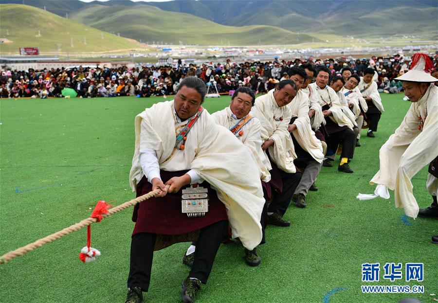 8月10日,当雄县牧民在拔河比赛中。新华社记者 晋美多吉 摄
