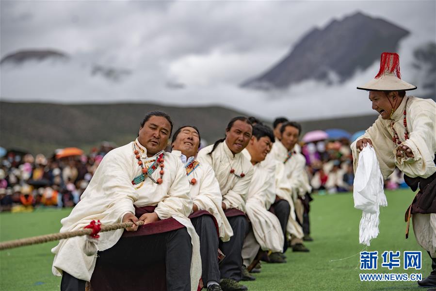 8月10日,当雄县牧民在拔河比赛中。新华社记者 普布扎西 摄