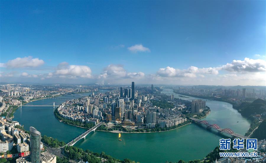 8月16日拍摄的广西柳州市柳江水域(无人机照片)。新华社发(黎寒池 摄)