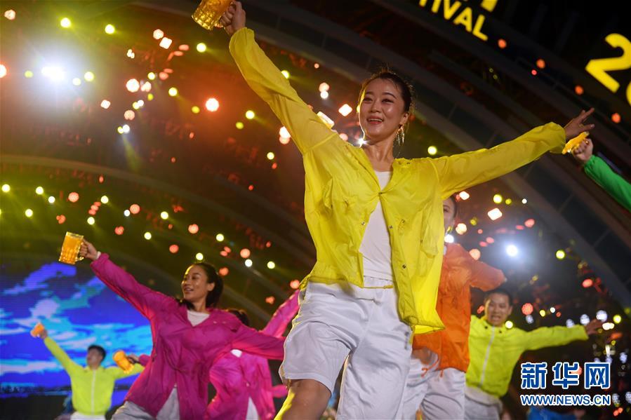 8月16日,演员在第30届青岛国际啤酒节闭幕式上演出。 8月16日晚,为期17天的第30届青岛国际啤酒节在青岛西海岸新区金沙滩啤酒城圆满落幕。本届啤酒节首创“线上+线下”办节新模式,在做好疫情防控的同时,为广大游客提供了来自40多个国家和地区的1500余款啤酒,还举办了200余场经贸、文体活动。 新华社记者 李紫恒 摄