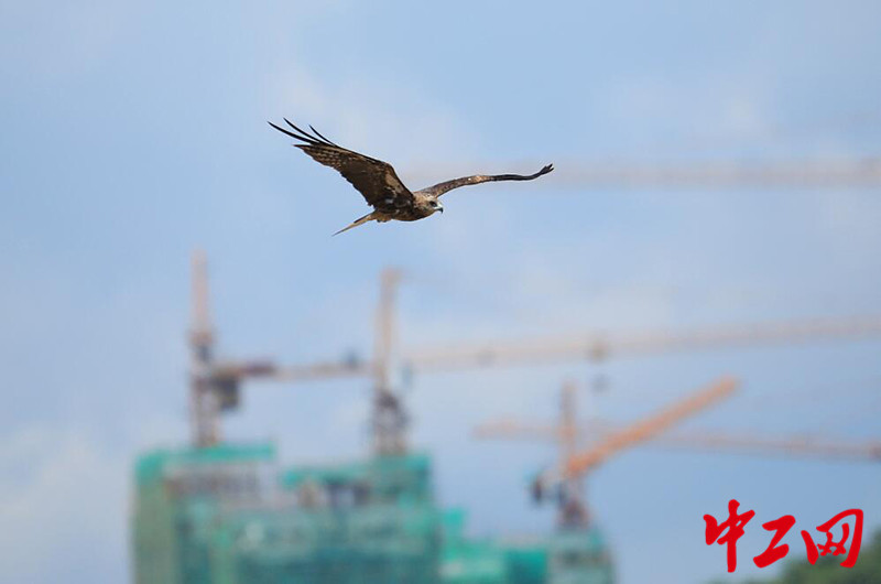 湖北宜昌:鹰鸢长江江面飞翔捕鱼