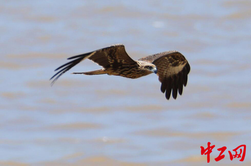 湖北宜昌:鹰鸢长江江面飞翔捕鱼