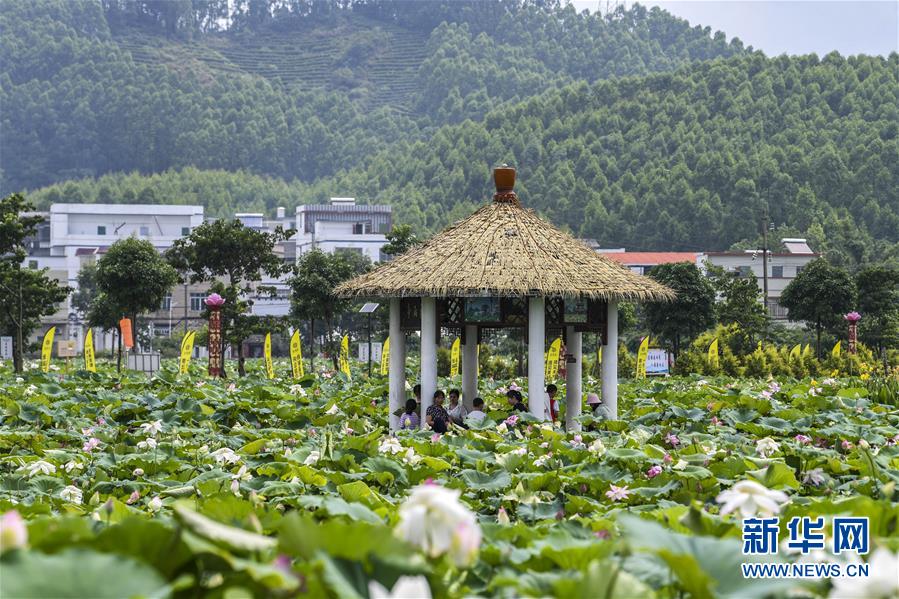 游客在广西贵港市荷美覃塘莲藕产业(核心)示范区内游玩(7月28日摄)。新华社记者 曹祎铭 摄