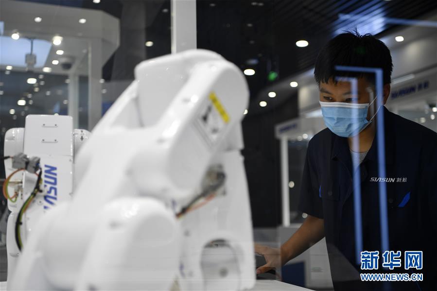 8月17日,天津新松机器人自动化有限公司工作人员在调试机器设备。 近年来,天津市滨海新区大力发展智能科技产业,涌现出一飞智控(天津)科技有限公司、天津新松机器人自动化有限公司等一批智能科技企业。目前,智能科技产业占滨海新区工业比重超过30%,已成为带动滨海新区走高质量发展之路的主要引擎。 新华社记者 李然 摄