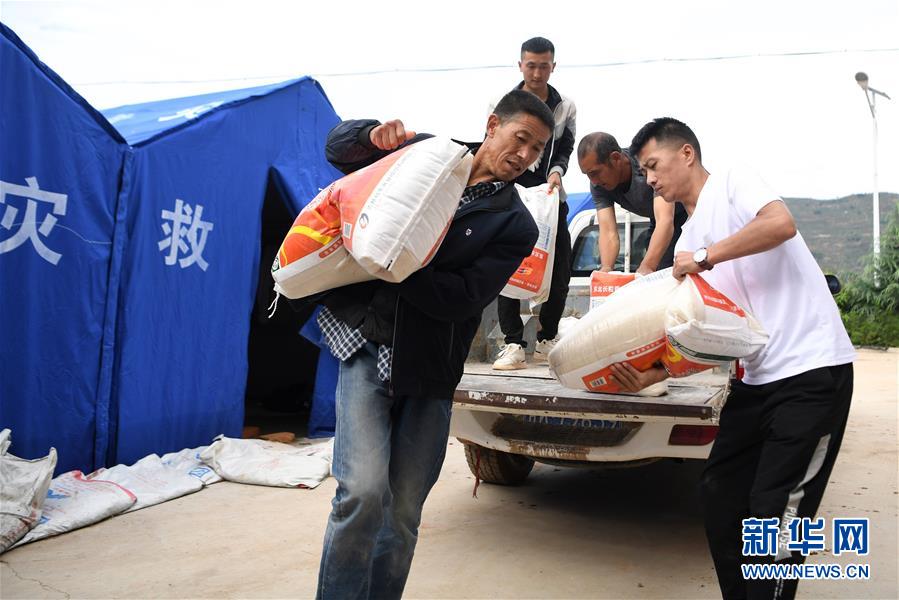 8月18日,在陇南市武都区马街镇泉家湾村临时集中安置点,村民从车上搬运生活物资。 近日,甘肃省陇南市持续遭遇强降雨,多个县区出现滑坡、泥石流等自然灾害。当地政府在学校、企业厂房等安全地带建立临时安置点,转移安置受灾群众,保障受灾群众的基本生活。 新华社记者 陈斌 摄