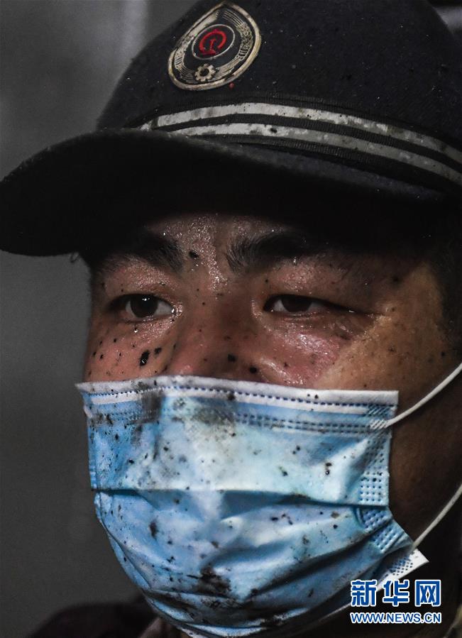 张洪波在动力室内进行清洗保养作业时,油污飞溅在他的脸上和口罩上(8月17日摄)。新华社记者 许畅 摄