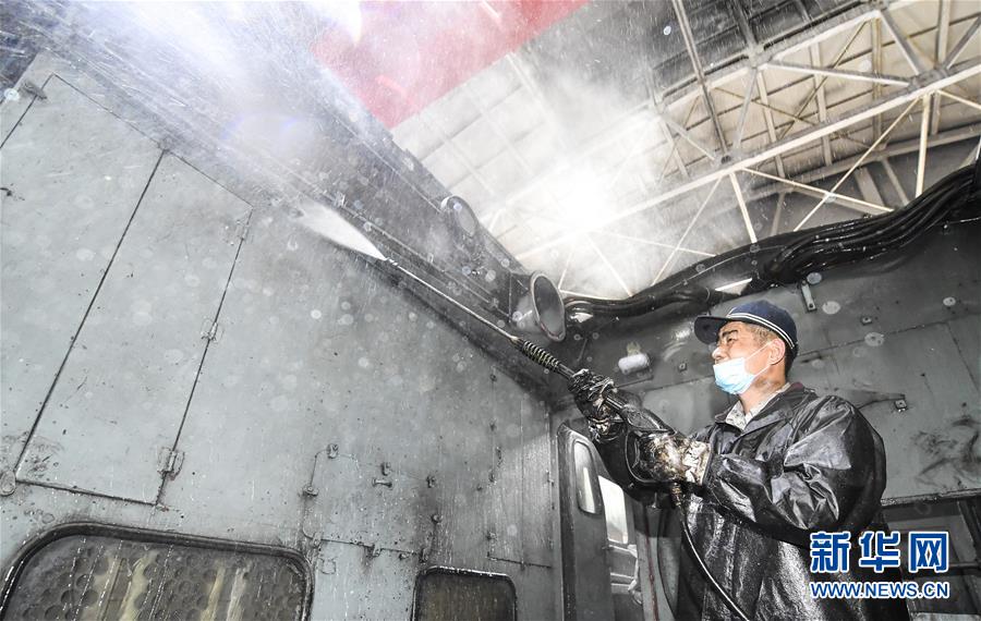 张洪波在动力室内进行清洗保养作业(8月17日摄)。新华社记者 许畅 摄