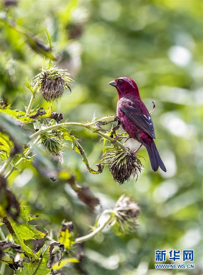 8月23日在金佛山自然保护区拍摄的酒红朱雀。 每年7月至9月,活跃于重庆市南川区金佛山上的酒红朱雀是当地一道亮丽的风景。 新华社发(瞿明斌 摄)