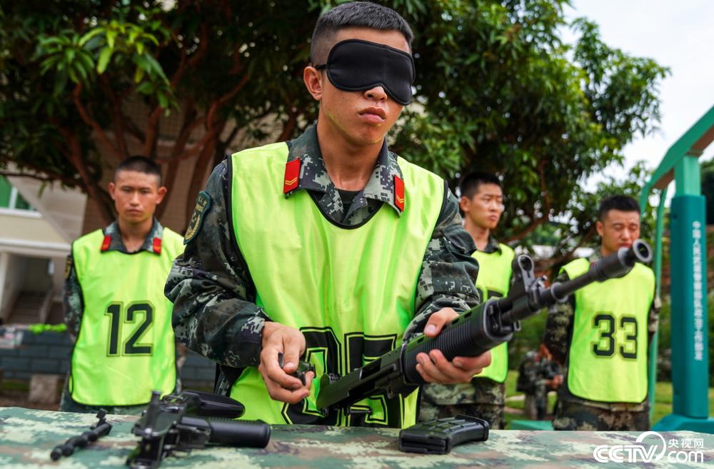2020年8月19日,武警官兵对无光条件下武器分解结合进行考核。 柴浩摄影