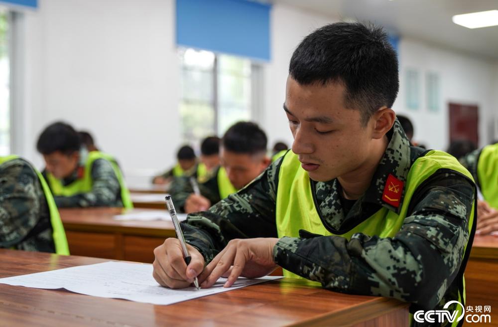 2020年8月19日,武警官兵进行理论考核。 柴浩摄影