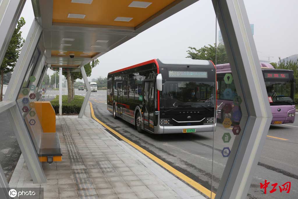 2020年8月23日,河南省郑州市,郑州市民不约而同来到郑东新区自动驾驶公交1号线沿线,免费乘坐自动驾驶公交车,亲身体验郑州智慧交通。据了解,被人们称之为“N多黑科技”的自动驾驶公交,经过两个多月试的运行,深受广大市民的“青睐”,每逢同末,人们就会“跨区”前来一睹自动驾驶公交车的“真容”。据司机师傅介绍,目前,自动驾驶公交车在测试阶段,载客的自动驾驶公交车还是由人工操作。(余洪恩/IC photo)