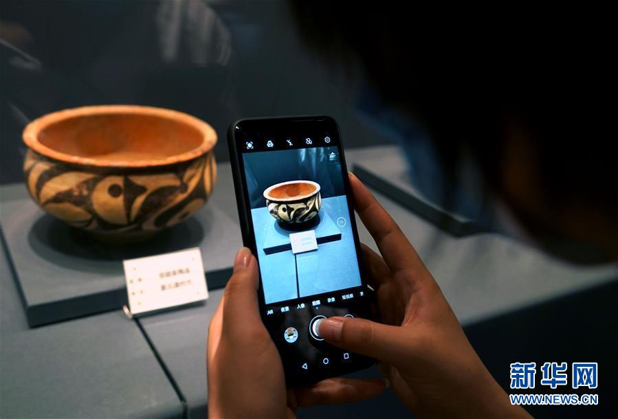 8月25日,参观者在“大河上下——黄河流域陶瓷精品展”上拍摄展品。 当日,“大河上下——黄河流域陶瓷精品展”在郑州大象陶瓷博物馆开展。本次展览共分为先秦时期、汉唐时期和宋元明清时期的黄河流域陶瓷三个部分,通过100余件展品讲述“黄河故事”。 新华社记者 李安 摄