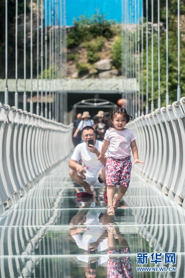 8月25日,游客在大岚镇丹山赤水景区游玩。新华社发(江汉摄)