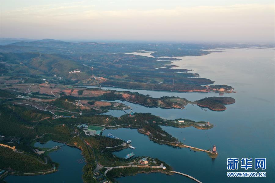 8月25日傍晚在河南南阳市淅川县境内拍摄的丹江口水库库区景色(无人机照片)。 丹江口水库是国家南水北调中线工程水源地。 新华社记者 冯大鹏 摄