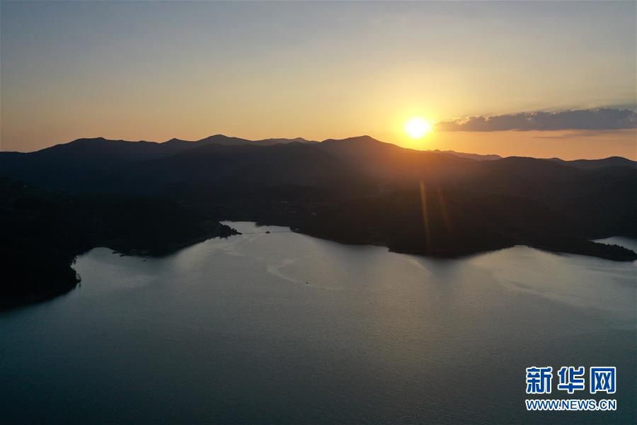 8月25日傍晚在河南南阳市淅川县境内拍摄的丹江口水库库区景色(无人机照片)。 丹江口水库是国家南水北调中线工程水源地。 新华社记者 冯大鹏 摄