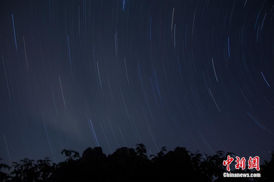 8月25日,江西三清山星空格外璀璨,呈现星空、星轨交织在一起的梦幻美景。 黄山 摄
