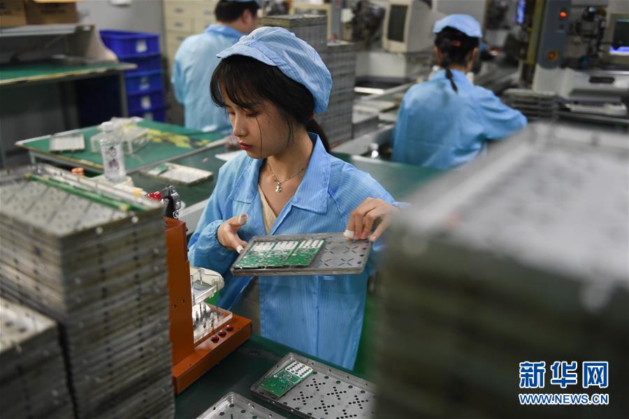 8月26日,在福建省南安市霞美镇,福建宝锋电子有限公司的工作人员在对讲机生产流水线上操作。 新华社记者 宋为伟 摄