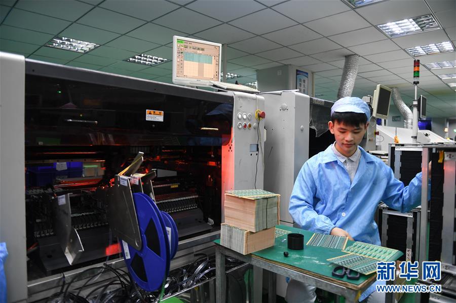 8月26日,在福建省南安市霞美镇,福建宝锋电子有限公司的工作人员在生产对讲机芯片。 新华社记者 宋为伟 摄