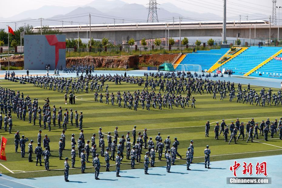 图为北京化工大学学生在操场军训。 中新社记者 富田 摄