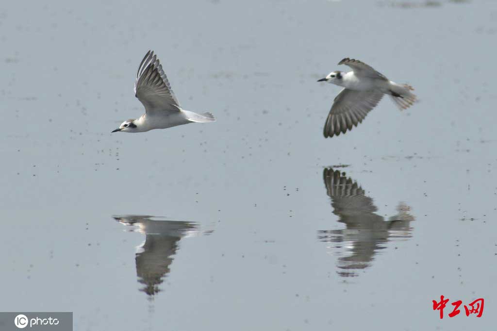 2020年8月25日,山东青岛,近日,随着暑气渐消,越来越多的燕鸥、棕头鸥、红嘴鸥等候鸟迁回山东省青岛市城阳区湿地觅食栖息,四处秋水长天,烟波鸥影相照,绘就一幅和谐自然生态画卷。( 王海滨/IC photo )