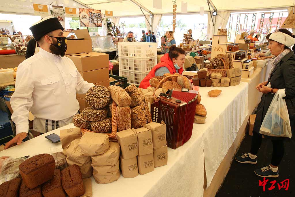 当地时间2020年8月27日,俄罗斯伊斯特拉,俄罗斯最大奶酪节开幕,民众戴口罩测温进入现场。( Mikhail Svetlov/视觉中国 )