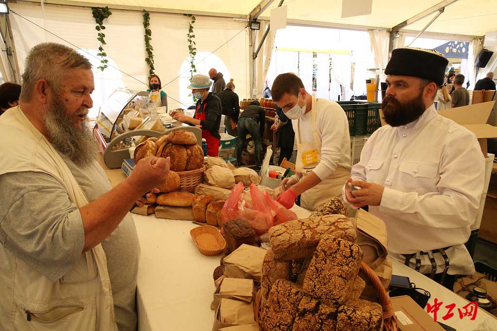 当地时间2020年8月27日,俄罗斯伊斯特拉,俄罗斯最大奶酪节开幕,民众戴口罩测温进入现场。( Mikhail Svetlov/视觉中国 )