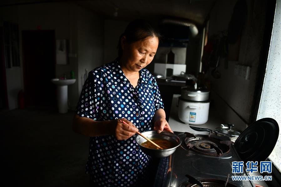 8月30日,傅兴芳在老年服务中心里准备午餐。新华社记者 刘军喜 摄