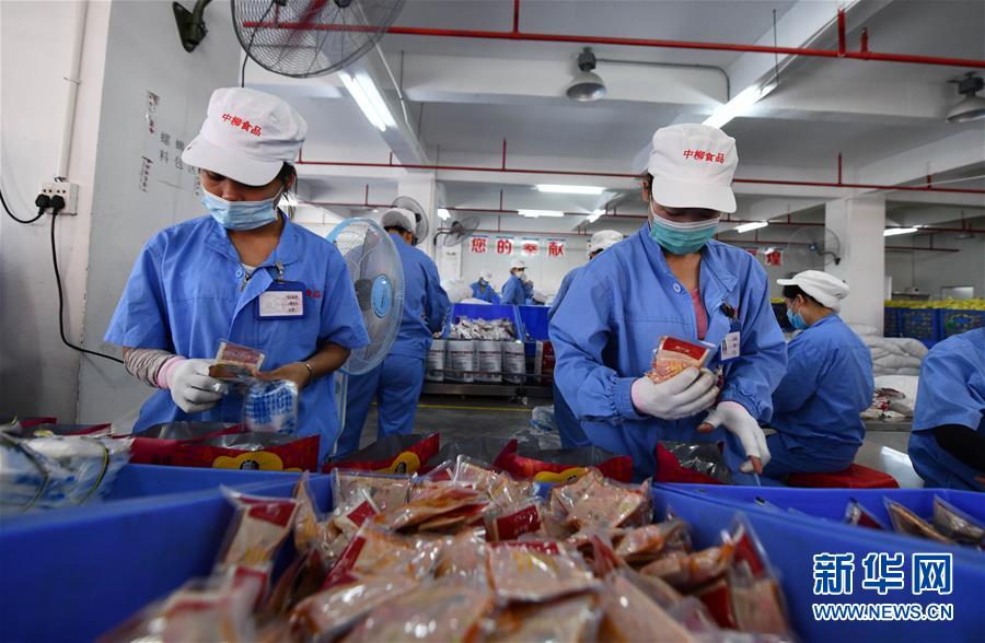 8月30日,在柳州市螺蛳粉产业园广西中柳食品科技有限公司生产车间,工人在生产线上包装螺蛳粉。 今年以来,广西柳州市螺蛳粉出口量大幅增长。据统计,1至7月,柳州市出口螺蛳粉52批约1535万元人民币。 新华社记者 黄孝邦 摄