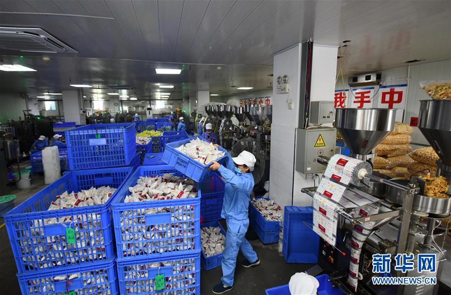 8月30日,在柳州市螺蛳粉产业园广西中柳食品科技有限公司生产车间,工人在生产线上忙碌。 今年以来,广西柳州市螺蛳粉出口量大幅增长。据统计,1至7月,柳州市出口螺蛳粉52批约1535万元人民币。 新华社记者 黄孝邦 摄