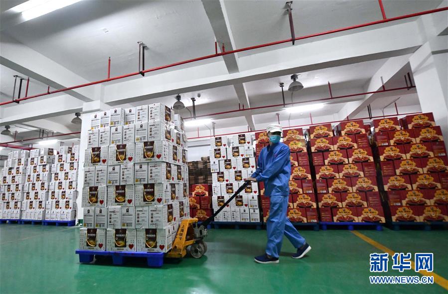 8月30日,在柳州市螺蛳粉产业园广西中柳食品科技有限公司生产车间,工人将包装好的螺蛳粉搬进仓库。 今年以来,广西柳州市螺蛳粉出口量大幅增长。据统计,1至7月,柳州市出口螺蛳粉52批约1535万元人民币。 新华社记者 黄孝邦 摄