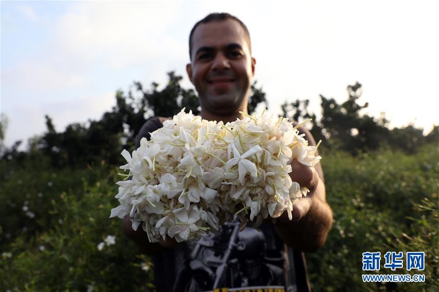 8月29日,一名男子在埃及西部省采摘茉莉花。 每年6月到11月是埃及茉莉花的收获季。收获的茉莉花将运送到工厂,用来制作香氛和精油。 新华社发(艾哈迈德·戈马 摄)